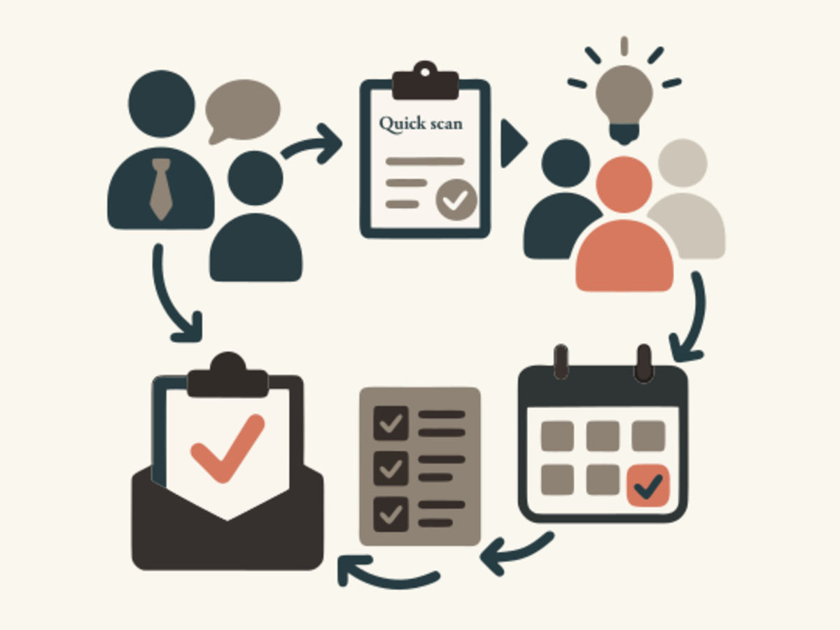 - De samenwerking start met een kennismaking en een Quick scan. Een scherpe analyse van de behoeften en een helder advies over strategie, resultaten en doorlooptijd.